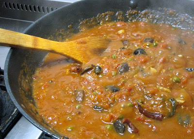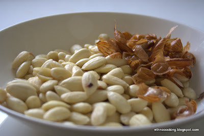 Heat the olive oil in a large pot ( I use a Le Creuset iron-cast pot), add the onions and cook until it is soft. Add the ginger and cinnamon stick and then the marinated chicken. Pour the marinate mixture in the pot. Add one cup of water, enough to barely cover the chicken. Place the lid on the pot and cook over a low heat for 30 minutes. Take the chicken pieces out and set aside.